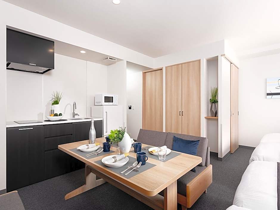 The spacious family room features air conditioning, tatami, as well as a private bathroom boasting a bath and a shower. The well-fitted kitchen has a stovetop, a refrigerator, kitchenware and a microwave. The family room offers Smartphone, a dining area, a wardrobe, a safe deposit box and a flat-screen TV. The unit has 3 beds and 2 futons.